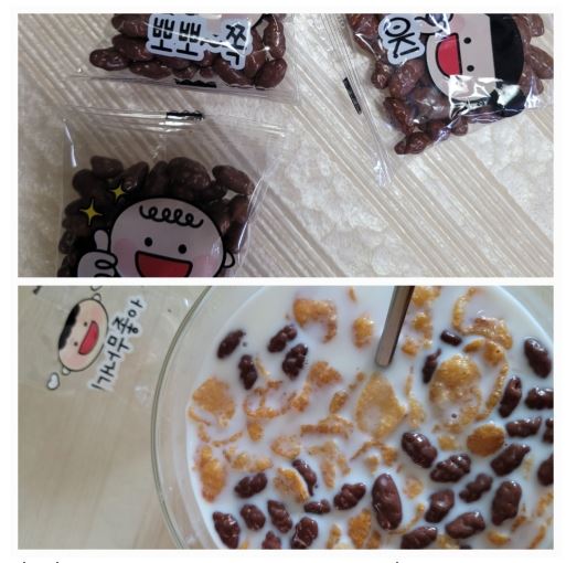 아이는 우유에 시리얼, 초코퐁 한봉 같이 넣어 먹으니 더 맛있었다네요.