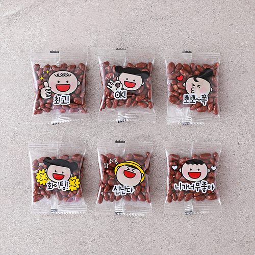 소포장 비닐에 적혀진 간단한 메시지와 귀여운 캐릭터 한번 먹기 좋은 소량이라 더 좋은거 같습니다.