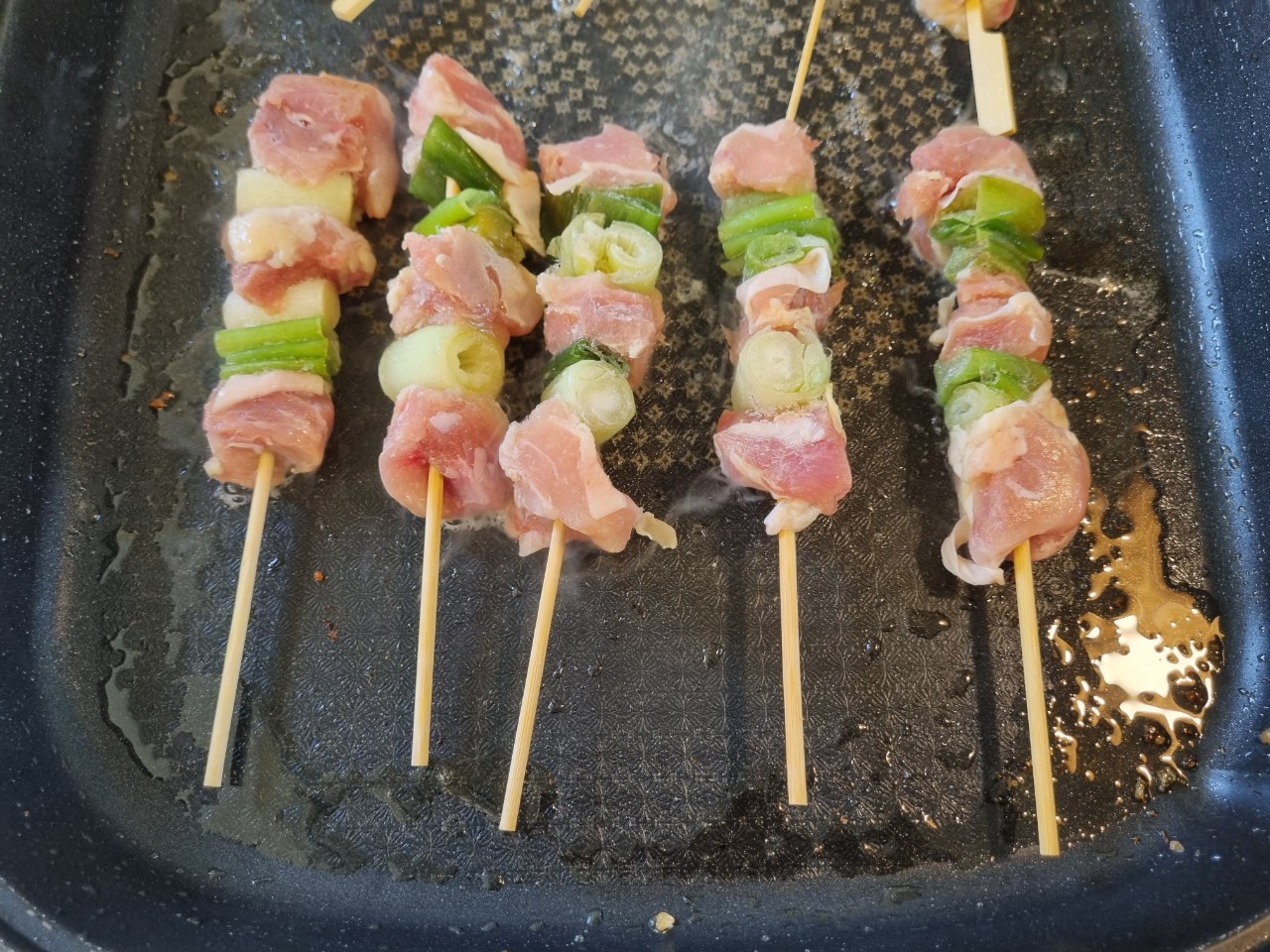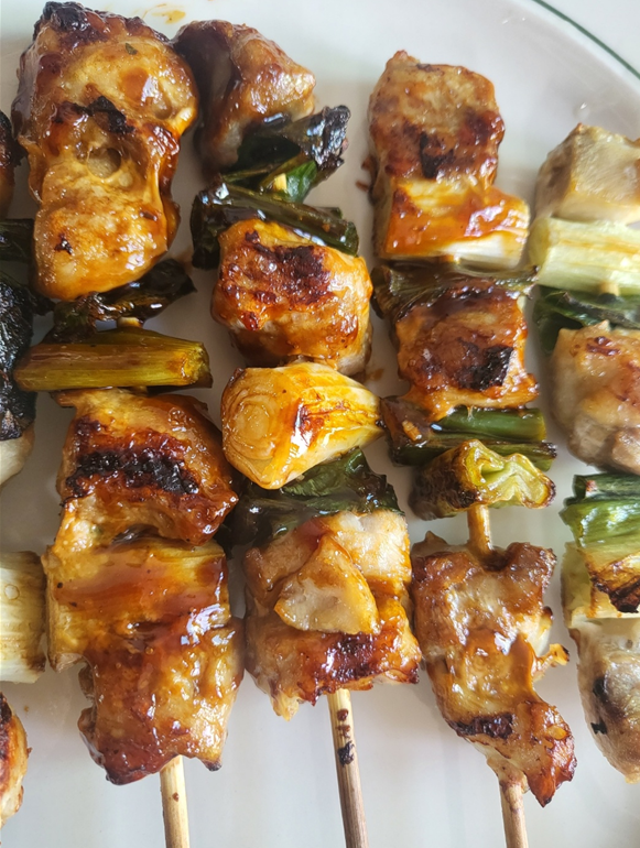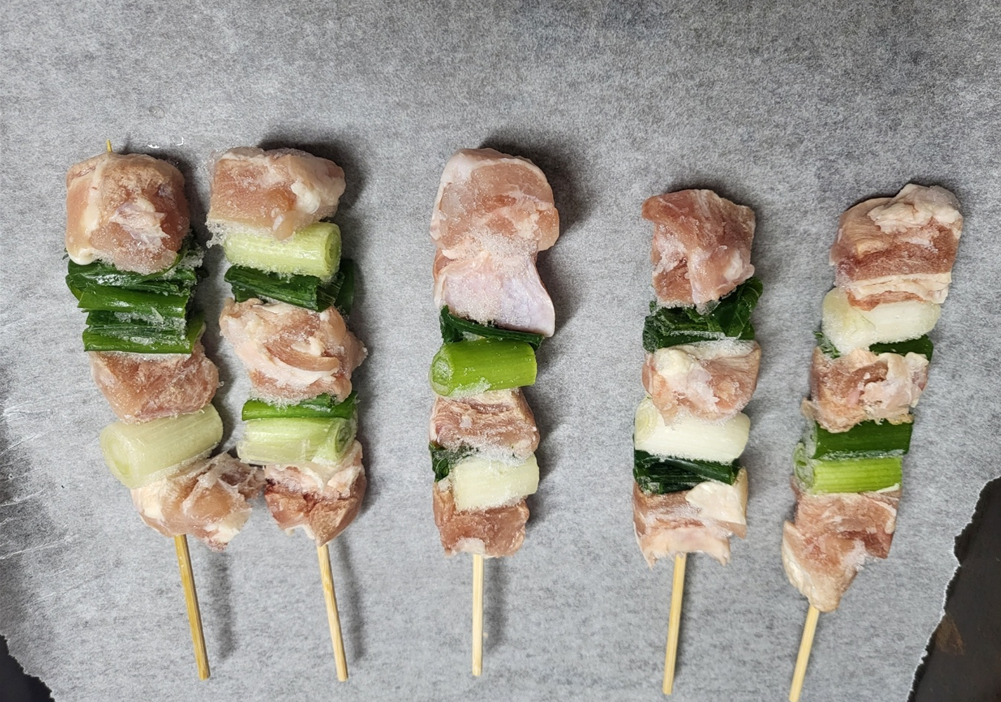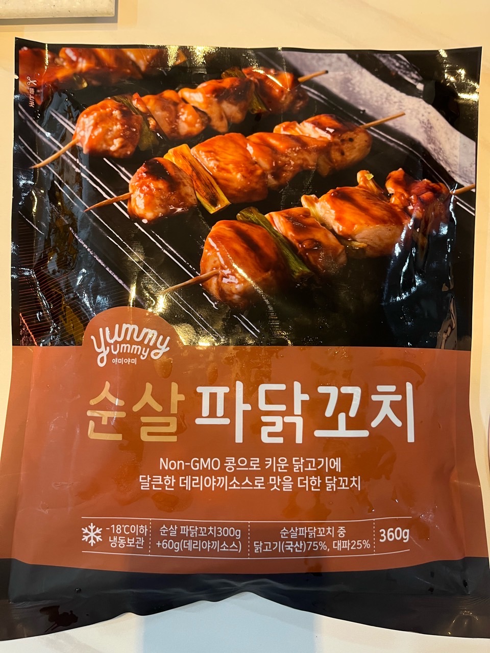 Non-GMO콩으로 키운 닭의 다리살과 대파를 꽂은 파닭꼬치 소금만 뿌려 담백하게~ 데리야끼소스를 발라 달큰하게 즐기세요.