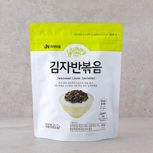 김자반(김/국산)42%, 유채유(유채씨/호주산)40%, 볶은깨(참깨/국산), 참기름(참깨/국산), 슈가파우더, 소금(국산)3%