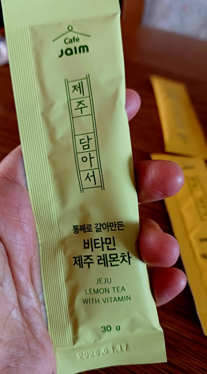 | | 물품특징 | | 제주산 레몬으로 만든 차입니다. | | | 생산과정 | | 계량 -> 혼합 및 교반 -> 충진 -> 후살균 -> 포장 | | | 이용방법 | | 음료 및 드레싱으로 이용하시면 됩니다. | | | 기타사항 | | 1) 취급 중 포장용기나 밀봉부가 손상되었거나 내용물이 변질되었을 경우 섭취하지 마십시오. 2) 개봉 후 즉시 섭취하시기 바랍니다. 3) 제품 개봉시 포장재 날카로운 면에 의해 상처를 입을 위험이 있고, 내용물이 흘러나올 수 있으므로 주의하시길 바랍니다. 4) 본 제품은 복숭아, 우유, 토마토, 대두, 아황산류를 사용한 제품과 같은 제조시설에서 제조하고 있습니다. | |