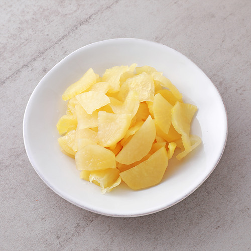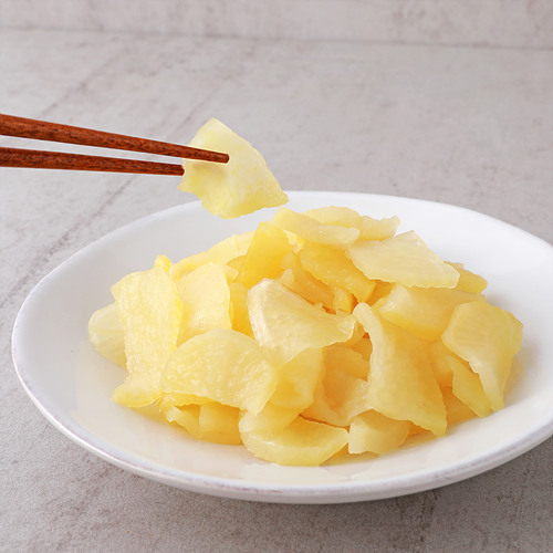 | | | 물품특징 | | 1. 국내산 무농약 무를 사용하였습니다. 2. 사카린나트륨, 빙초산, 보존료, L-글루탐산나트륨 無첨가 | | | 이용방법 | | 1. 밑반찬으로 이용하십시오. | | | 생산과정 | | 원재료 입고 - 전처리 - 세척 - 염절임 - 탈염 - 계량 - 압착 - 조미액 충진 - 포장 - 살균 - 보관 - 출하 | | | 기타사항 | | 칼 등으로 포장지를 제거할 경우 손을 다치지 않게 조심하세요. | |