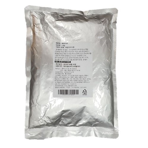 | | | 공급시기 | | 상시공급 | | | 식품유형 | | 복합조미식품 | | | 생산지 | | 쿱푸드시스템㈜ 제2공방/ 전라남도 구례군 용방면 용산로 107-88 | | | 원부재료 | | 우리밀짜장가루[춘장{소맥분(우리밀:국산)}, 흑미가루(흑미:국산)}]30%, 춘장베이스분말[춘장{소맥분(우리밀:국산)}, 양파(국산), 안심캐러멜시럽, 덱스트린, 양배추]22.5%, 유기농설탕12.5%, 감자전분(감자:국산), 분말간장(양조간장, 덱스트인), 알파쌀가루, 소금, 효모식품, 볶음양파분말, 유채유 [대두,밀,돼지고기 함유] | | | 중량설명 | | 1 kg | | | 포장재질 | | 폴리에틸렌(내면) | | | 소비기한 | | 제조일로부터 9개월 | | | 보관방법 | | 실온보관 (직사광선을 피하여 서늘한 곳에 보관, 개봉 후 밀폐용기에 넣어 냉장고에 보관해주세요.) | | | 영양성분표시 | | 해당없음 | |