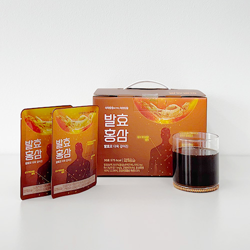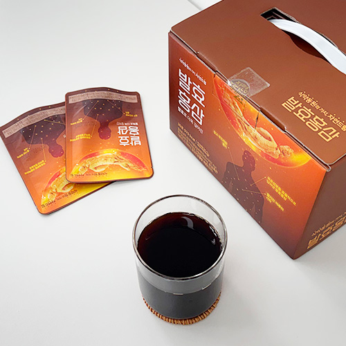 | | | 물품특징 | | .원료 기준 진세노사이드 **11mg/g 이상(원료 기준)**의 고품질 홍삼농축액을 주원료로 사용 .흑마늘, 대추 등 엄선된 부원료를 더해 풍미와 조화를 강화 .효소 및 유산균을 활용한 발효 공정을 통해 홍삼 사포닌을 저분자 형태로 분해 섭취 용이 .설탕 대신 알룰로스 사용으로 칼로리 부담은 줄이고, 쓴맛은 완화 .깊고 진한 맛으로 매일 부담 없이 섭취 가능 | | | 이용방법 | | 1일 1~2회 섭취, 1회 1포 음용 | | | 생산과정 | | 원료계량->발효->교반 ->여과->살균->충진->금속검출->포장->출고 | | | 기타사항 | | . 간혹 침전물이 생길수 있으나 이는 가공과정에서 발생한 원료의 일부이므로 안심하고 이용하시기 바랍니다. . 파우치 포장 그대로 전자렌지에 가열하지 마십시오. | |