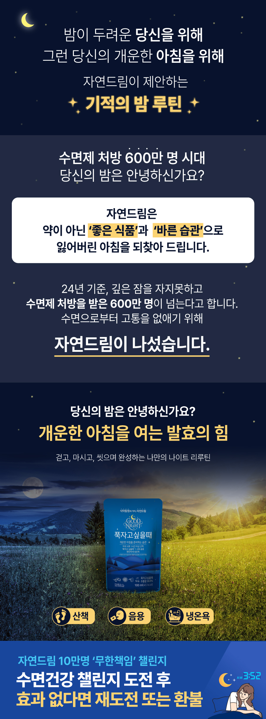| | | 물품특징 | | .시금치, 깻잎, 미강을 발효하여 자연 유래 원료의 가치를 담았습니다. .용안육·원지·연자육·구기자에 타트체리를 더해 동서양 전통 원료가 조화를 이루는 프리미엄 블렌딩 음료입니다. .정성껏 추출한 원액을 한 번 더 농축해 깊고 진한 풍미를 완성했습니다. .바쁜 일상 속 편안한 휴식을 위한 한 잔을 제안합니다. | | | 이용방법 | | . 하루 섭취량 1~2개를 권장합니다. . 취침 1~2시간전에 섭취하는 것을 권장합니다. . 가벼운 산책과 냉온욕 후 섭취하시면 더 좋습니다. . 운전 전에는 섭취를 주의해 주세요 . 생약성분을 함유하고 있으므로 임산부 및 영·유아는 전문의와 상의 후 섭취해 주세요.