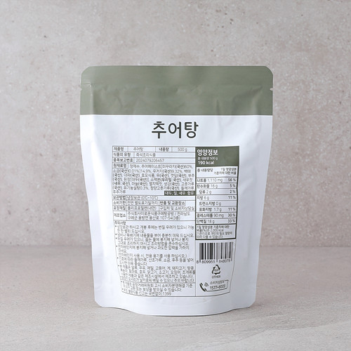 | | | 공급시기 | | 상시 공급 | | | 식품유형 | | 즉석조리식품 | | | 생산지 | | 생산지명 : ㈜자연드림치유식품 만두앤탕공방 주소 : 전라남도 구례군 용방면 용산로 107-54 | | | 원부재료 | | 정제수, 추어페이스트[미꾸라지(국산)60%, 소금(국산)0.01%]14.9%, 우거지(국산)9.32%, 백태(국산), 대파(국산), 효모식품, 무(국산), 깻잎(국산), 부추(국산), 된장[대두(국산)], 소맥분(우리밀:국산), 새우젓(새우:국산), 마늘(국산), 멸치액젓, 생강(국산), 고춧가루(국산), 유기농설탕0.3%, 청양고춧가루(국산), 들깨가루, 후추가루 | | | 중량설명 | | 500g | | | 포장재질 | | 폴리프로필렌(PP) | | | 소비기한 | | 제조일로부터 6개월 | | | 보관방법 | | 냉장보관(0~10℃) | | | 영양성분표시 | | 총 1회 제공량 500g | | 영양정보 | 1회 제공량당 함량 | %영양성분 기준치 | | 나트륨 | 1,110 mg | 56 % | | 탄수화물 | 16 g | 5 % | | 당류 | 2 g | 2 % | | 지방 | 6 g | 11 % | | 트랜스지방 | 0 g | 0 % | | 포화지방 | 1.7 g | 11 % | | 콜레스테롤 | 90 mg | 30 % | | 단백질 | 18 g | 33 % | | 1일 영양성분 기준치에 대한 비율(%)은 2,000kcal 기준이므로 개인의 필요 열량에 따라 다를 수 있습니다. |