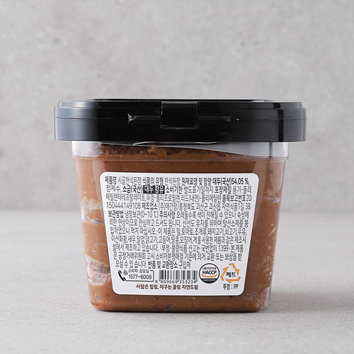| | | 공급시기 | | 상시공급 | | | 식품유형 | | 한식된장 | | | 생산지 | | ㈜애간장 / 충청북도 괴산군 괴산읍 자연식품 1길 38 | | | 원부재료 | | 대두(국산)54.05%,정제수,소금(국산) ※알레르기유발물질 : 대두 함유 | | | 중량설명 | | 450 g | | | 포장재질 | | 용기-폴리에틸렌테레프탈레이트, 뚜껑-폴리프로필렌, 리드(내면)-폴리에틸렌 | | | 소비기한 | | 제조일로부터 12개월 | | | 보관방법 | | 냉장보관(0~10℃) | | | 영양성분표시 | | 해당없음 | |
