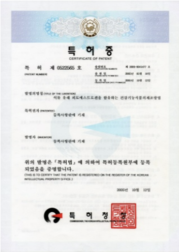 건강기능식품의 제조방법(특허 제0522565 호)