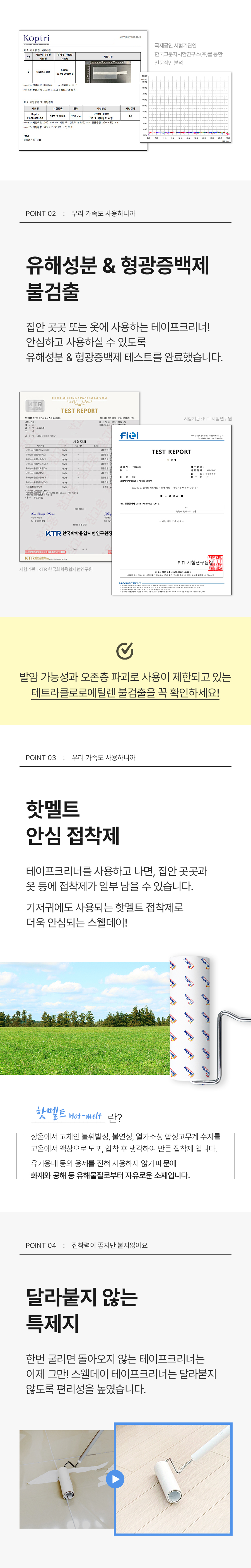 | | | 물품특징 | | 1. 바닥에 달라붙지 않으면서 확실한 접착력 2. 유해성분&형광증백제 불검출 3. 핫멜트 안심 접착제 4. 끊김없이 깔끔한 사선 컷팅 5. 호환 가능한 60회분 리필 | | | 이용방법 | | 비닐을 벗겨내고 필요 부분에 돌려가며 사용합니다. | | | 품질보증기준 | | 본 제품은 공정거래위원회가 고시한 소비자 분쟁해결기준에 의거 보상 또는 교환을 받을 수 있습니다. | |