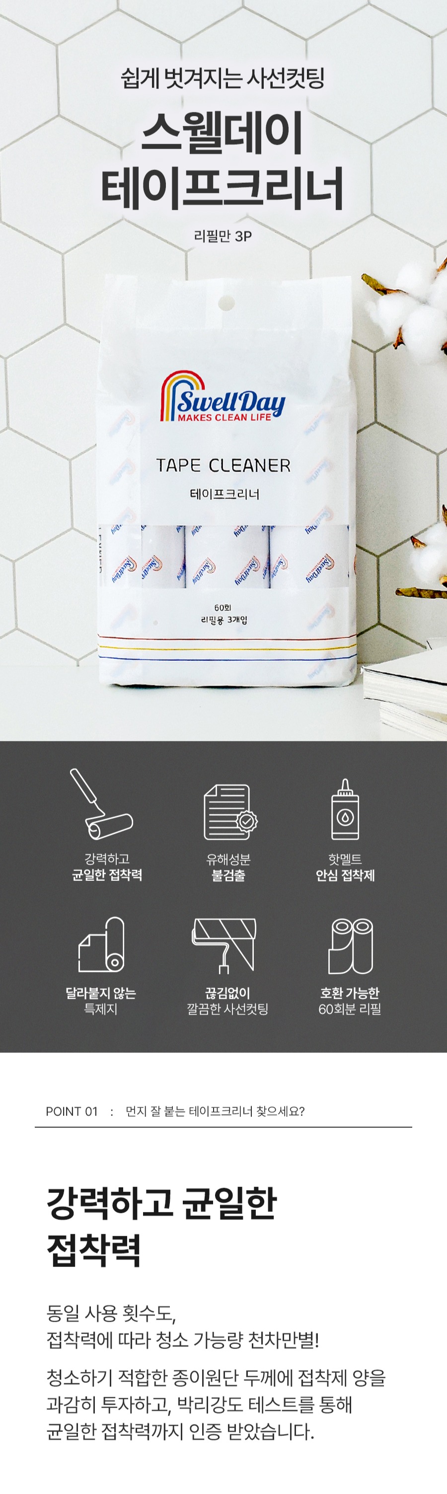 | | | 공급시기 | | 기획공급 | | | 업체명 | | (주)홈스웰 / 서울특별시 강남구 봉은사로 108길 23, 2층 | | | 재질 | | 가공지, 핫멜트 접착제 | | | 규격 | | 리필: 16cm x 4.9cm(리필 내경: 3.8cm ± 0.05cm) X 3개입 | | | 구성 | | 리필 3P | | | 제조국 | | 중국 OEM | | | 주의사항 | | 1. 처음부터 비닐장판, 유리판 등 매끄러운 곳에 사용할 경우 테이프가 달라붙을 수 있습니다. 2. 유아의 손에 닿지 않는 곳에 보관하시고, 중요한 서류와 사진 등 기타 찢어지기 쉬운 물건들과 고온 및 습기를 피해주십시오. | |