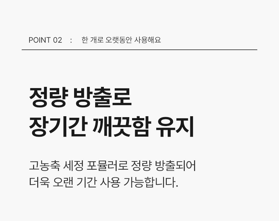 | | | 공급시기 | | 기획공급 | | | 업체명 | | 수입자: (주)홈스웰 / 서울특별시 강남구 봉은사로 108길 23, 2층 | | | 제형/품목/용도 | | 제형: 고체형 품목: 세정제 용도: 일반용(변기용) | | | 규격 및 구성 | | 1개: 220g (3개월 사용 가능) | | | 제조국 | | 제조국: 중국 제조원: 허남성이스다무역유한공사 | | | 사용물질 | | 주요물질 물, 소듐스테아레이트, 에리오글라우신다이소듐염, 폴리옥시에틸렌 스테아르산에스터, 파라빈왁스 계면활성제 소듐스테아레이트(음이온계), 폴리옥시에틸렌스테아르산에스터(비이온계) 기타물질 향료 | | | 사용상 주의사항 | | 상세정보 확인 | |