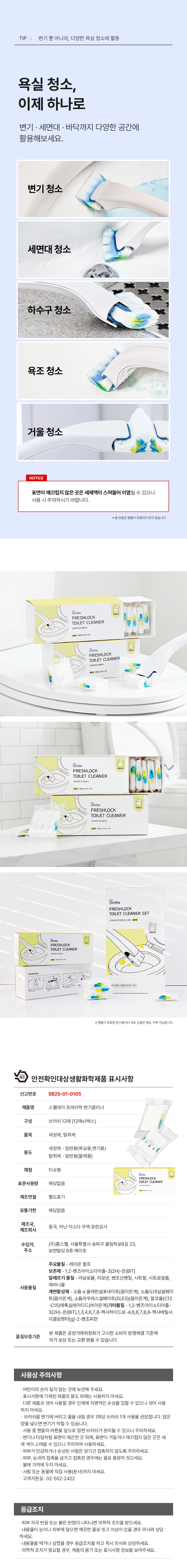 | | | 물품특징 | | 개별 포장된 12개입 브러쉬 물에 잘 풀어지는 브러쉬 | | | 이용방법 | | 변기클리너 본품에 연결하여 사용 | | | 품질보증기준 | | 본 제품은 공정거래위원회가 고시한 소비자 분쟁해결 기준에 의거 보상 또는 교환받을 수 있습니다. | |