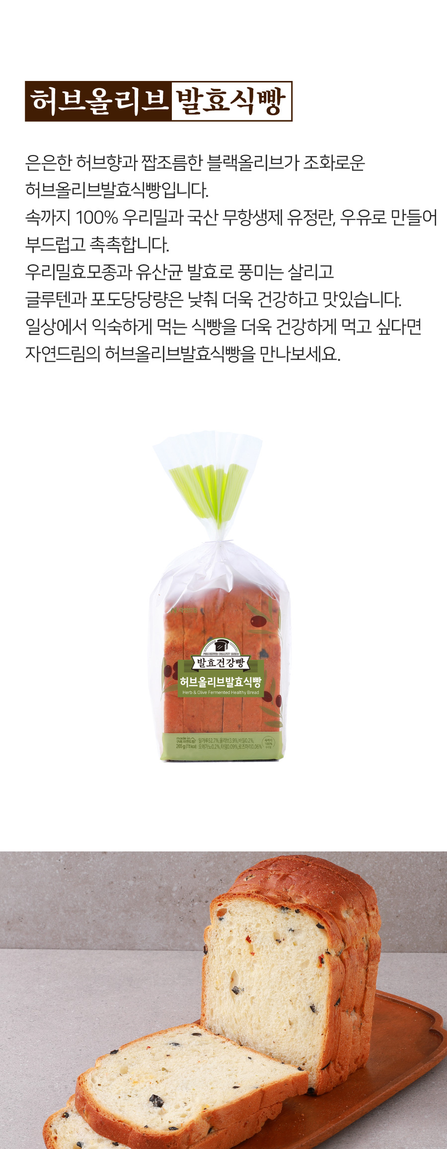 우리밀효모종과 유산균으로 발효해 더욱 풍미 가득한 <허브올리브발효식빵>