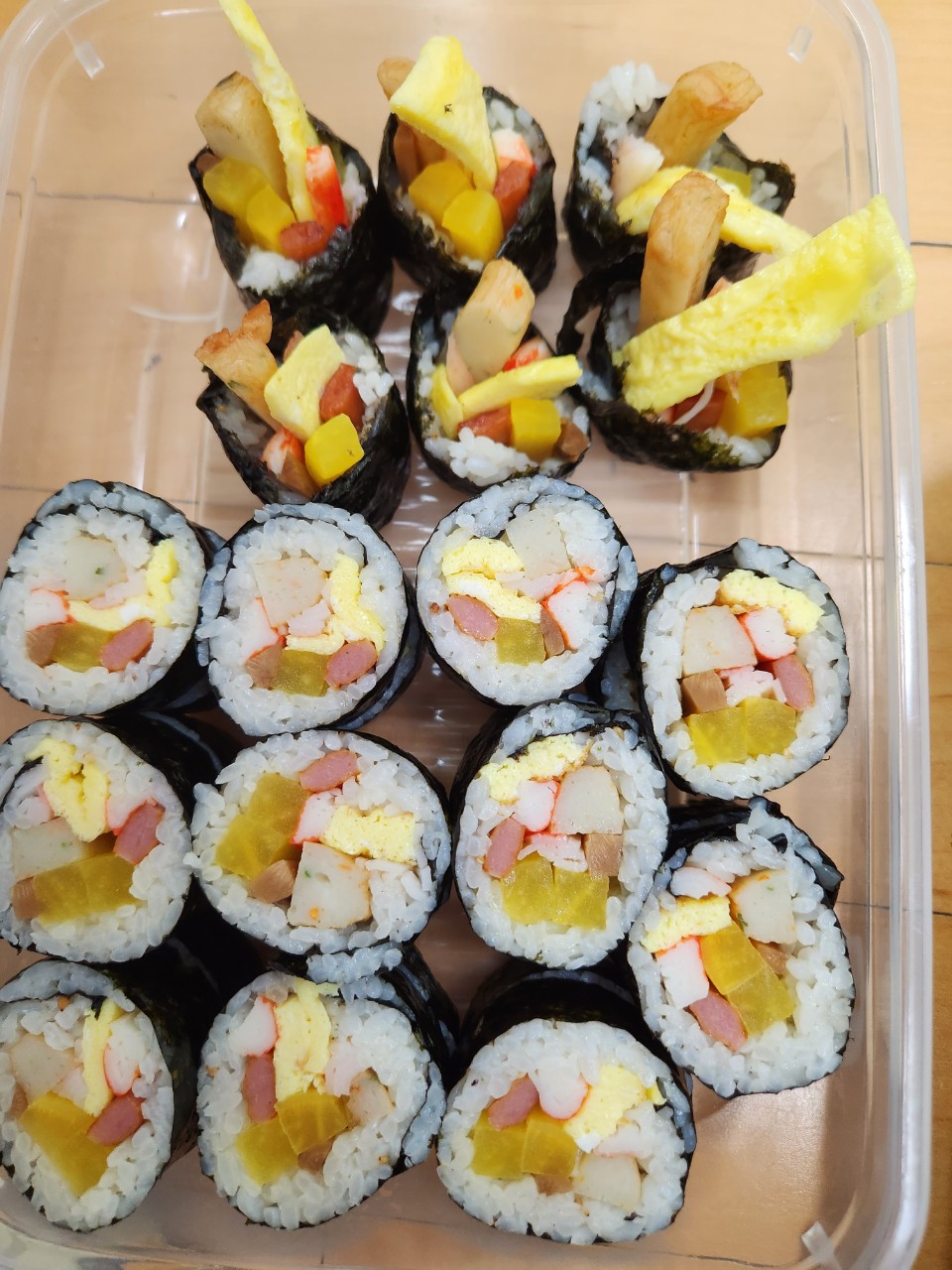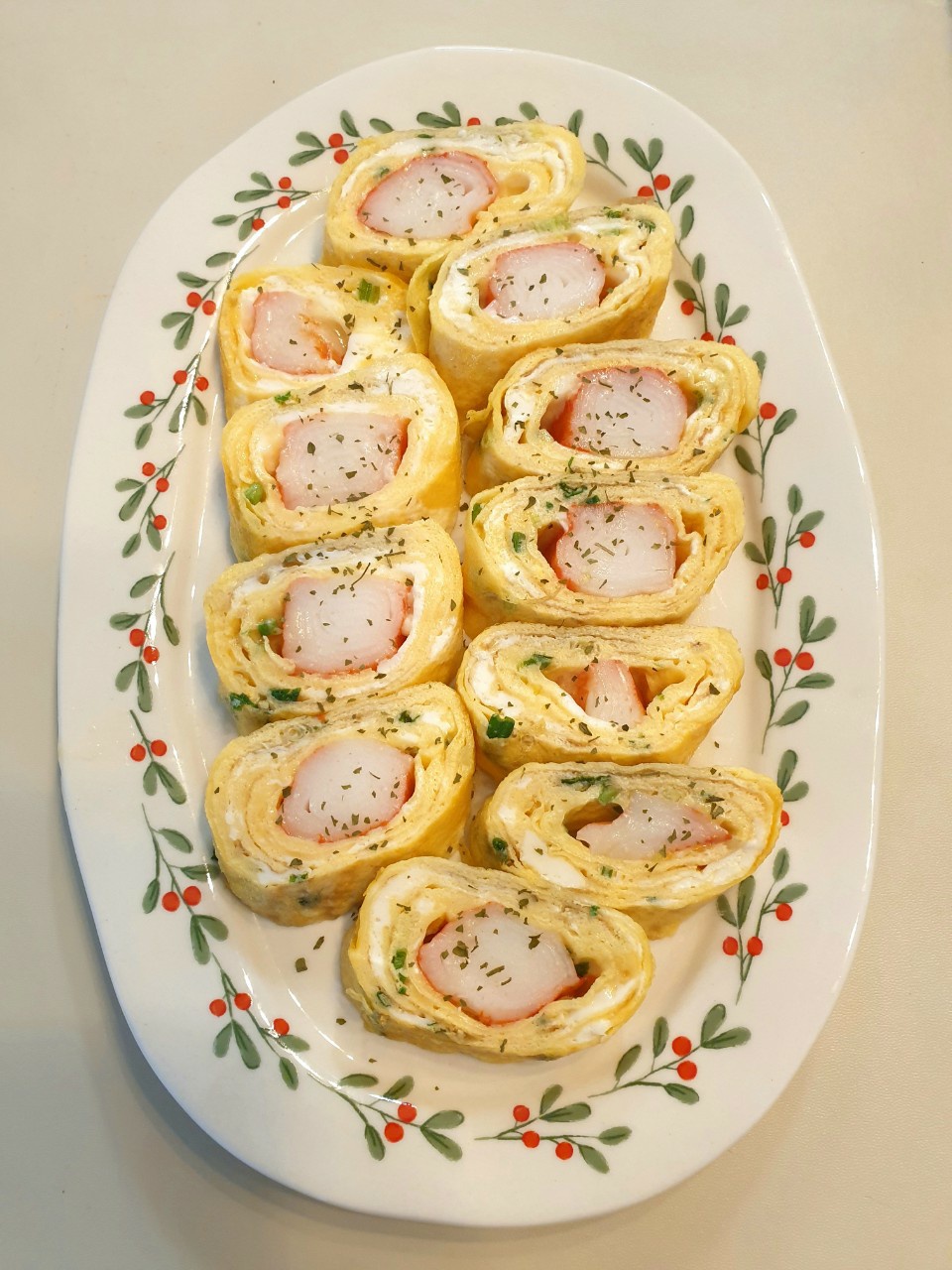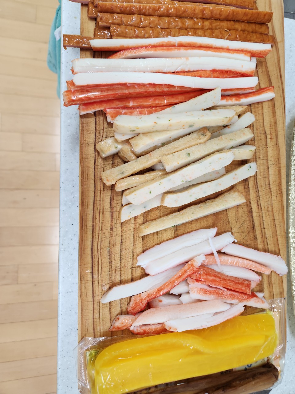 - 파프리카와 홍국 천연색소를 사용한 맛살입니다.