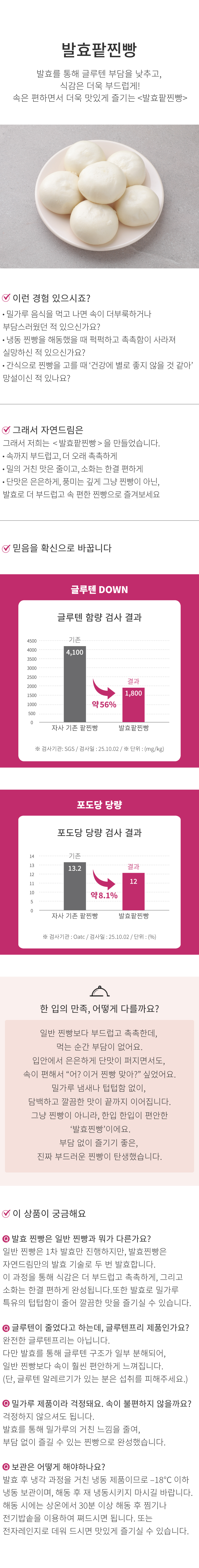 | | | 기타사항 | | -이미 해동된 바 있으니, 해동 후 재 냉동시키지 마시길 바랍니다. - 조리후 찐빵이 뜨거우므로 취급시 주의하시기 바랍니다. - 본 제품은 쇠고기, 닭고기, 돼지고기, 고등어, 땅콩, 잣, 메밀, 호두, 복숭아, 토마토, 새우, 게, 오징어, 알류, 조개류(굴,바지락), 아황산류를 사용한 제품과 같은 제조시설에서 제조하고 있습니다.