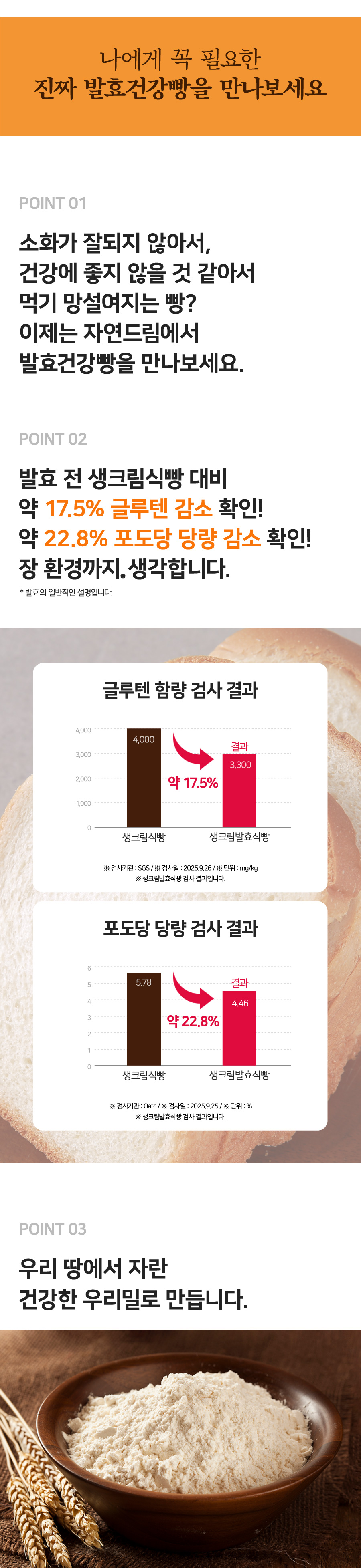 | | | | 물품특징 | | 1. 속까지100% 우리밀과 국산 생크림으로 만들어 더 부드러운 생크림발효식빵입니다. 2. 우리밀효모종과 유산균 발효로 빵의 풍미는 살리고 글루텐과 포도당 당량은 낮췄습니다. | | | 이용방법 | | 1. 식빵 그대로 드시거나 토스트기에 구워 간단하게 드시면 좋습니다. 2. 취향에 따라 버터나 크림치즈, 스프레드 등을 발라 드시거나 우유 또는 음료 등과 함께 드시면 더욱 맛있게 즐기실 수 있습니다. 3. 식빵 위에 야채, 햄, 치즈, 과일 등을 올려 샌드위치로 이용하시면 간편 한끼로도 좋습니다. | | | 생산과정 | | 원재료 계량 → 믹싱 및 혼합 → 분할 → 중간 발효 → 성형 → 2차 발효 → 소성 → 냉각 → 슬라이스 → 포장 → 출고 | | | 기타사항 | | 이 제품은 알류, 메밀, 땅콩, 고등어, 게, 새우, 돼지고기, 복숭아, 토마토, 아황산류, 호두, 닭고기, 쇠고기, 오징어, 조개류, 잣을 사용한 제품과 같은 제조시설에서 제조하였습니다. | |