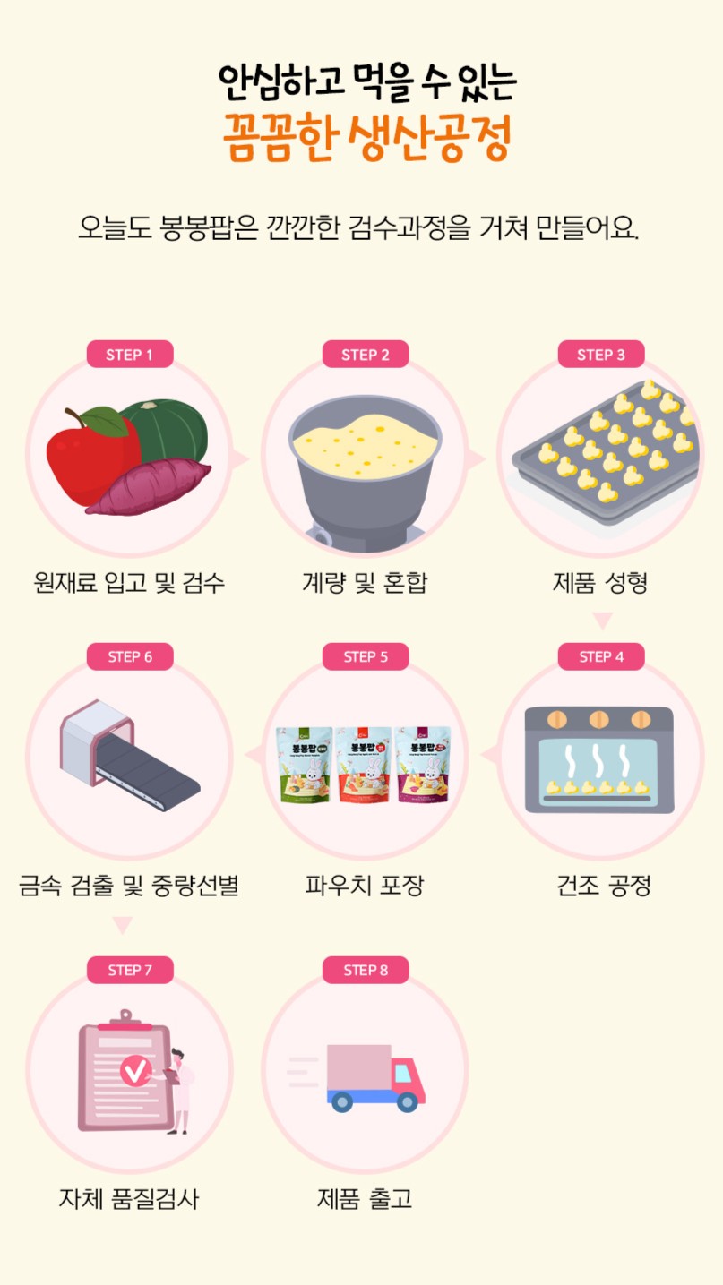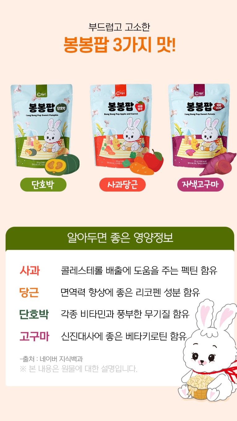 | | | 공급시기 | | 기획공급 | | | 식품유형 | | 과자류 | | | 생산지 | | 주식회사 오늘도 (전라남도 담양군 담양읍 에코산단3로 67) | | | 원부재료 | | 현미(국내산,유기농) 99.5%,사과즙(국내산,유기농) 0.25%, 당근분말 (국내산,유기농)0.25% | | | 중량설명 | | 25g | | | 포장재질 | | PP | | | 소비기한 | | 제조일로부터 12개월 | | | 보관방법 | | 직사광선을 피해 실온보관 | | | 영양성분표시 | | 총 내용량 25gㅣ 100kcal 나트륨 0mg (0%), 탄수화물 21g (6%), 당류 0g (0%), 지방 0.9g (2%), 트랜스지방 0g , 포화지방 0g (0%), 콜레스테롤 0mg (0%), 단백질 2g (4%), 칼슘 0mg 1일 영양성분 기준치에 대한 비율(%)은 2,000kcal 기준이므로 개인의 필요 열량에 따라 다를 수 있습니다. | |