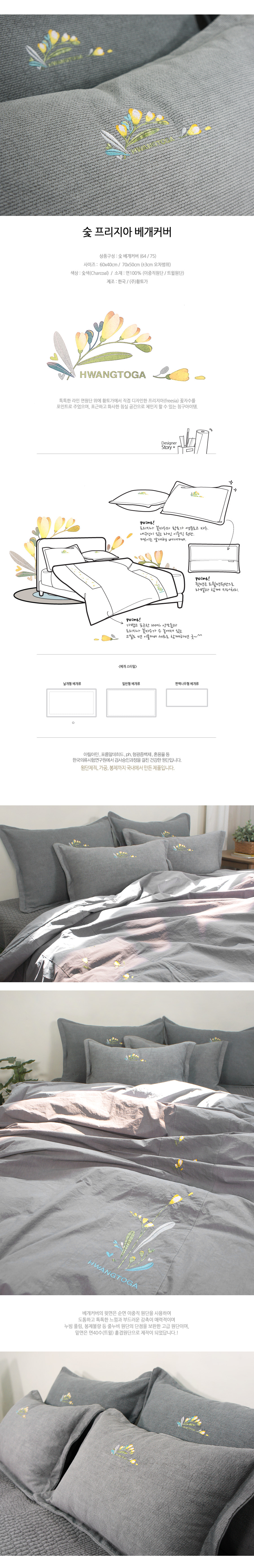숯프리지아베개커버*성인용   |    형광증백제, 아릴아민, 포름알데히드 없는 상품입니다.