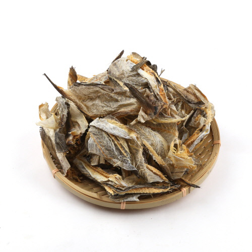 [황태껍질 무침] * 재료 : 황태껍질 70g, 전분가루 1 큰 술, 식용유 2 큰 술, 양파 1/5개, 대파 1대, 청양고추 1개, 다진 마늘 1 큰 술, 고춧가루 1 큰 술, 간장 2 큰 술, 설탕 1 큰 술, 맛술 1 큰 술, 통깨 ① 황태껍질은 먹기 좋은 크기로 잘라 씻어 물기를 빼고 여기에 전분가루를 넣어 섞어줍니다. ② 팬에 기름을 두르고 황태껍질을 10분 이상 볶아줍니다. ③ 양파, 대파, 청양고추를 다져 준비하여 다진 마늘과 함께 팬에 넣고 양념(고춧가루, 간장, 설탕, 맛술)을 모두 넣어 약불로 볶아줍니다. ④ 볶아두었던 황태껍질을 양념에 넣고 버무려 줍니다. 통깨를 넣고 마무리하면 완성입니다.