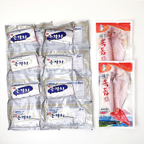 | | | 물품특징 | | ①. 청정제주의 수산물 은갈치와 옥돔을 혼합한 선물세트로 귀한분께 제주를 선물하세요. ②. 제철 옥돔과 갈치만을 엄선하고, 옥돔은 살이 더 쫄깃하게 냉풍건조하였습니다. ③. 깔끔하게 손질,세척하여 먹기좋은 양으로 포장해 이용에 불편함이 없도록 준비했습니다. | | | 생산과정 | | ①.제주은갈치: 원료반입->해동->두절,내장,지느러미제거->토막->세척->선별->동결->내포장->금속검출검사->외포장->출하 ②. 제주옥돔: 원료반입->전처리(염처리)-> 1차세척-> 2차세척->나열->냉풍건조->급속동결->1차포장->금속검출기통과->2차포장->출하 | | | 이용방법 | | 구이, 국, 조림 등 다양한 레시피로 즐기세요.