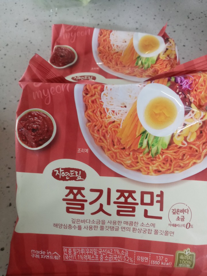 | | | 상품특징 | | 1.우리밀과 국산 감자전분을 넣어 면발이 차지고 부드럽습니다 . 2.깊은바다소금을 사용한 매콤한 소스에 해양심층수를 사용한 면으로 만들었습니다. 3.비빔장은 국산 고춧가루, 우리밀로 만든 고추장과 식초 가 어우려져 매콤,달콤합니다. | | | 생산과정 | | 1.원재료를 배합 -> 반죽 -> 면대형성 -> 선절 ->증숙 -> 성형 -> 유탕조에서 튀겨냄 ->냉각 -> 면 2.스프를 면과함께 포장한다. | | | 이용방법 | | 1.물 600ml(약 3.5컵 정도)를 끓인 후 면을 넣고 약 3분 30초간 더 끓입니다. 2.익힌면을 냉수에 헹구어 차게 만든 후 물기를 빼고 비빔장과 잘 비벼드시면 됩니다. *기호에 따라 오이, 당근, 콩나물,계란 등 각종 채소를 곁들여 드시면 더욱 맛있습니다. | | | 기타사항 | | * 이 제품은 달걀, 메밀, 우유, 땅콩, 고등어, 복숭아, 호두, 돼지고기, 쇠고기, 닭고기, 오징어, 새우, 조개류(굴, 홍합), 토마토를 사용한 제품과 같은 제조시설에서 제조하고 있습니다. | |