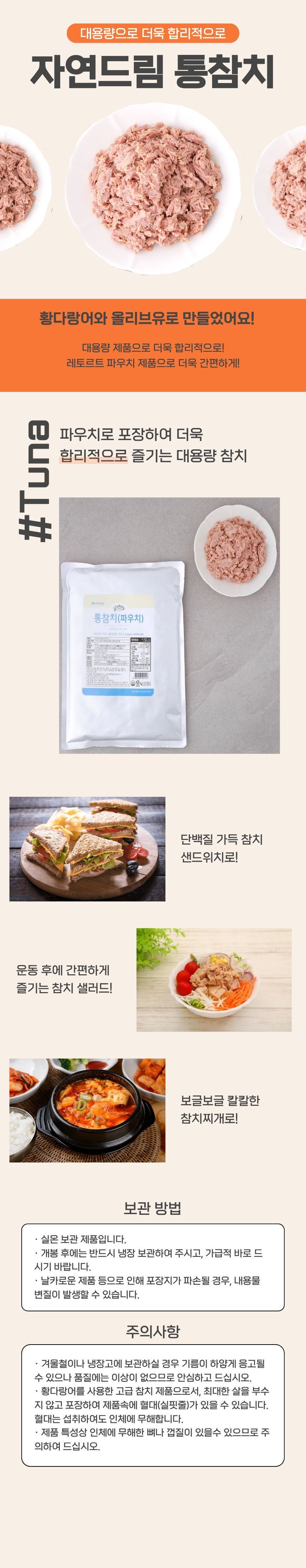 | | | 물품특징 | | 1. 다랑어 중에서도 고급어종인 황다랑어와 올리브유로 만들었습니다. 2. 국산 채소(양파/양배추/당근)를 사용하였습니다. | | | 생산과정 | | 원료입고→세척→해동→성형→가열→배합→밀봉→살균→금속검출→X-ray→중량선별→포장 | | | 이용방법 | | 샐러드, 김밥, 주먹밥, 샌드위치, 파스타, 찌개 등 다양한 요리에 간편하게 활용하세요. | | | 기타사항 | | 1. 겨울철이나 냉장고에 보관하실 경우 올리브유가 하얗게 응고될 수 있으나 품질에는 이상이 없으므로 안심하고 드십시오. 2. 최대한 살을 부수지 않아 제품속에 혈대(실핏줄)가 있을 수 있습니다. 혈대는 인체에 무해하며 제품에서 나올 수 있는 물질이니 안심하고 드셔도 무방합니다. 3. 제품 특성상 참치의 뼈나 껍질이 있을 수 있습니다. 섭취시 주의하여 드십시오. | |