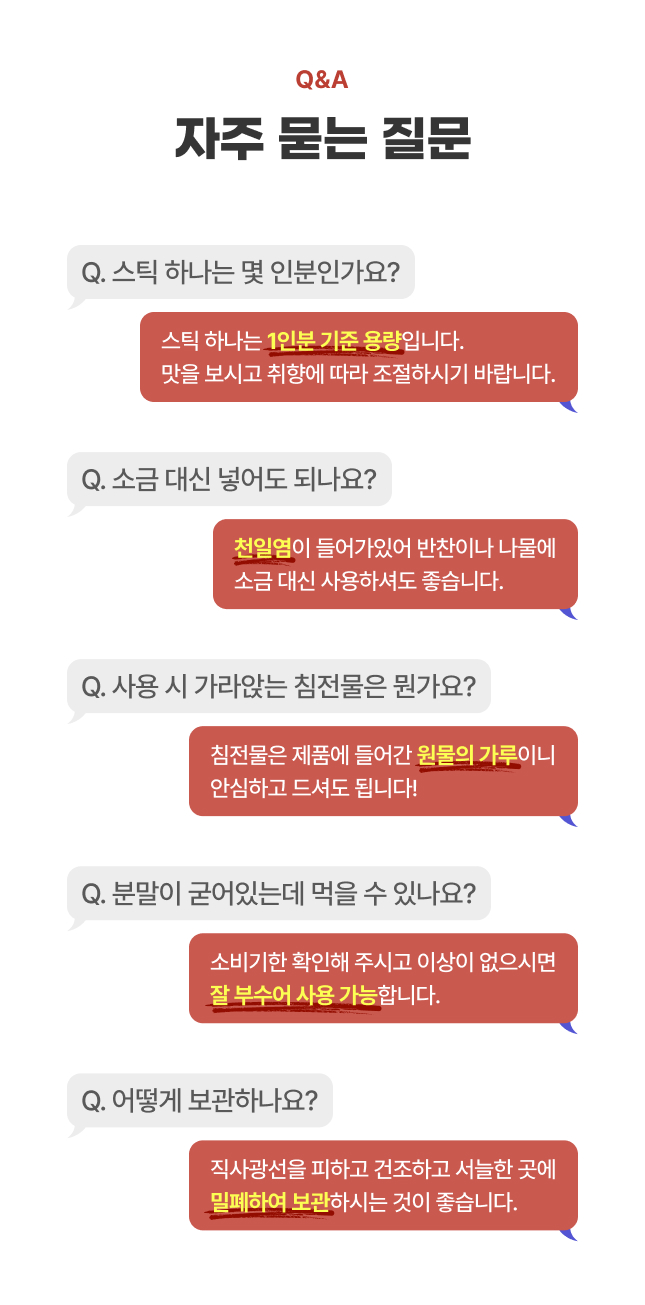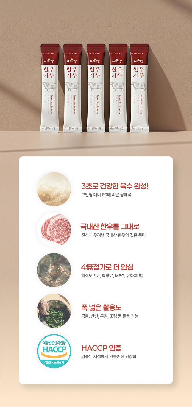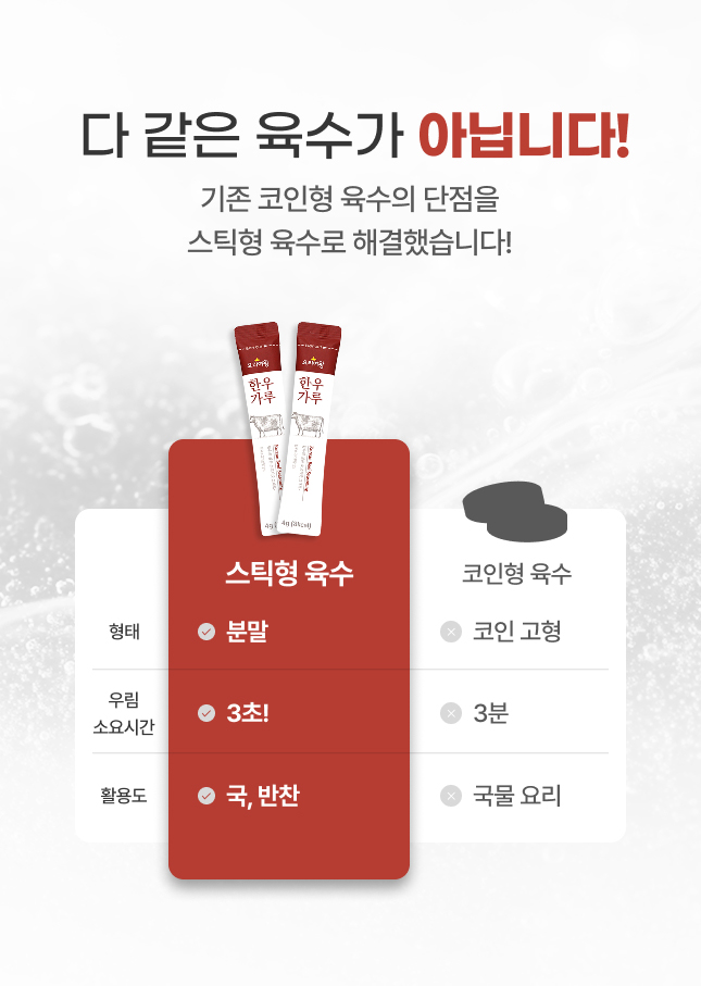 | | | 물품특징 | | 국산 한우가 함유된 한우가루 | | | 생산과정 | | 원료입고 ▶ 계근 ▶ 투입 및 혼합 ▶ 분급 ▶ 검사 ▶ 소포장 ▶ 외포장 ▶ 출고 | | | 이용방법 | | 물 500ml에 한우가루 한 포를 넣고, 약 3분간 끓여 섭취 | | | 기타사항 | | | |