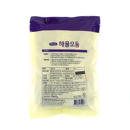 | | | 생산과정 | | 글레이징원물입고 → 계량 → 소포장 → 금속검출기 → 출고 | | | 이용방법 | | * 상온에서 자연해동 후 조리하시기 바라며, 충분히 가열 후 섭취하시기 바랍니다 * 새우살은 바닷물을 사용하니 반드시 요리 전 충분히 염분을 제거한 후 이용하시기 바랍니다. *조개류는 껍질 등이 있을 수 있으니 이용시 주의바라며 흐르는 물에 충분히 세척하시기 바랍니다. | | | 기타사항 | | 이 제품은 조개류(바지락, 굴, 키조개, 홍합, 대합조개), 새우, 오징어를 사용한 제품과 같은 제조시설에서 제조하고 있습니다. | |