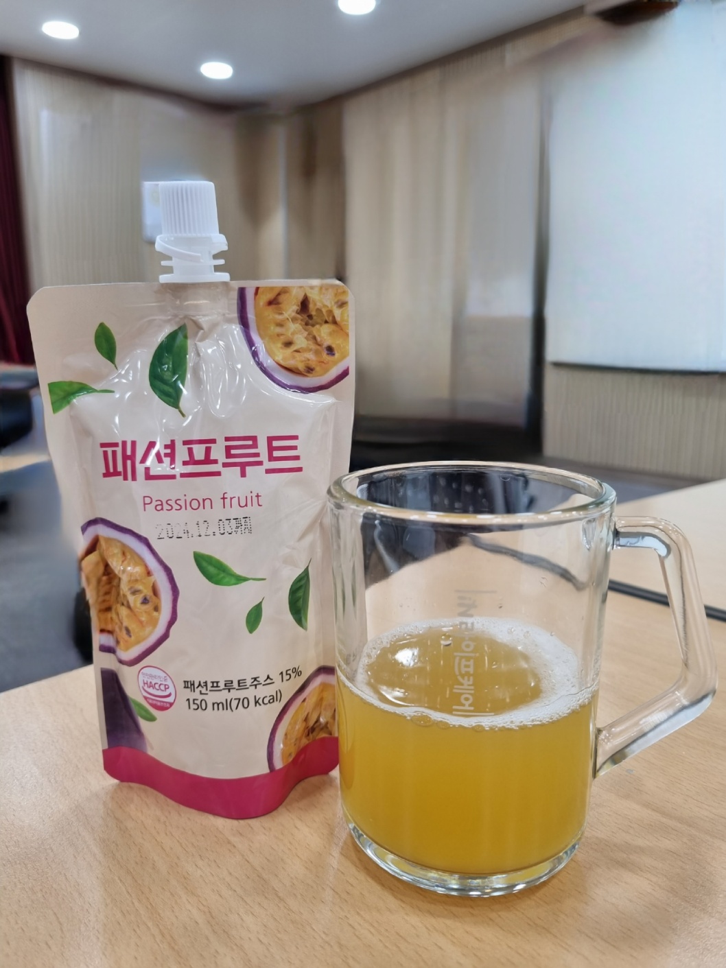 착즙한 패션프루트와 유기농설탕, 프락토올리고당으로 만든 주스