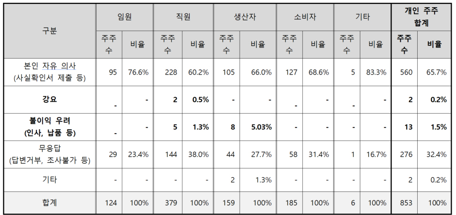 주식 강매 주장 관련 전수조사 결과 안내 |