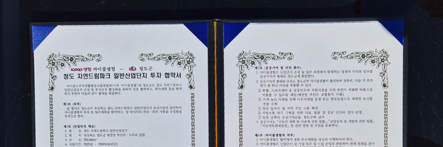 ![]() 36개 기관, 54개 분야, 276건 청도군이 이번 협약을 위해 거친 과정입니다. 환경영향평가 과정에서 수많은 기관이 의견을 냈고, 청도군 공무원들은 그 의견 하나하나를 일일이 찾아다니며 협의를 완료했다고 합니다. 김하수 청도군수는 이 과정을 거쳐 "군민들께 드리는 최고의 선물"이라며 "사활을 걸었다"고 했습니다. 협약 전 괴산자연드림파크와 구례자연드림파크를 직접 방문한 전종율 청도군의회 의장도 힘을 보탰습니다. 괴산 맨발산책로의 소나무 아래 벤치에서 "섬세한 배려에 감동했다"고 했고, 구례에서는 지역 친환경농산물 수매와 락페스티벌 개최 등 지역 경제와 문화를 함께 살리는 실천이 인상적이었다고 합니다. 두 곳을 보고 온 전 의장은 이번 협약식에서 "청도군의회도 함께 하겠다"고 약속했습니다. 1,300만 명이 기다린 5년반경 100km 내 1,300만 인구를 품고 있는 청도는 대구, 부산, 울산, 경남·북이 모두 생활권입니다. 신미경 아이쿱생협연합회 회장은 "영남권은 조합원의 구매력과 활동력이 높은 곳"이라며 "조합원들이 오랫동안 기다려왔다"고 전했습니다. 기다린 건 조합원만이 아닙니다. 취임 후 2020년 MOU를 되살리는 데 힘을 쏟은 김하수 군수는 본인 표현대로 "불씨를 활화산으로" 만드는 작업을 해왔습니다. 그렇게 2025년 9월 일반산업단지계획 승인고시를 받아냈고, 이번 투자협약은 그 연장선에 있습니다.