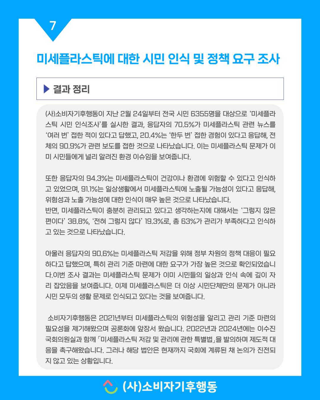 [소기행] 미세플라스틱에 대한 시민인식 및 정책요구 조사 결과보고 |