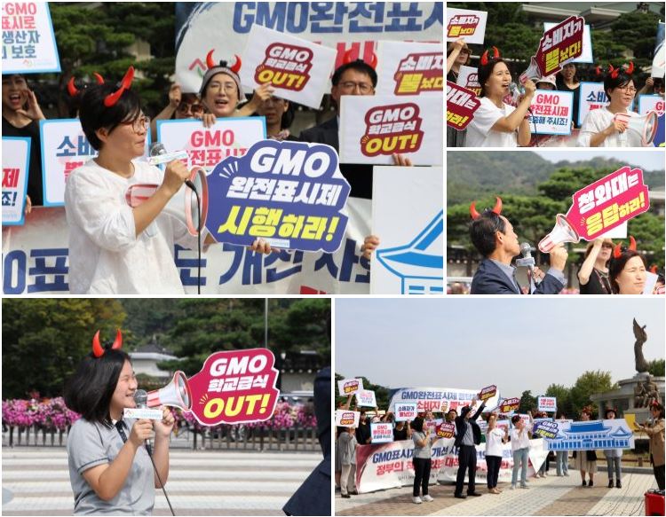 소비자의 목소리보다 식품 대기업의 입장에 기울어 있는 식약처를 믿고 기다릴 수 없다. 청와대가 직접 나서 국민의 목소리에 귀 기울여 문재인 대통령의 약속인 「GMO 완전표시제와 GMO 학교급식 퇴출」에 응답할 것을 촉구한다. 정부는 적극적인 자세로 국민의 의견을 수용하고 소비자의 알 권리와 선택할 권리를 보장하는 GMO 완전표시제 단계별 개선방안을 마련할 것을 촉구한다.