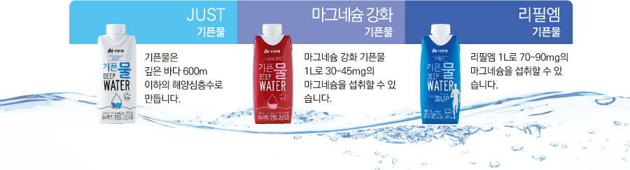 일상 속 마그네슘 보충이 필요한 분들에게는 마그네슘 함량을 더욱 높인 마그네슘 강화 기픈물과 리필엠을 추천합니다