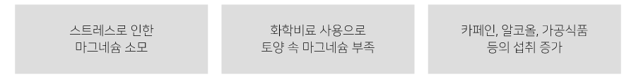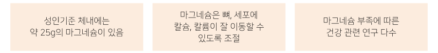 *출처 - 한국 웰빙지수 23개국 중 꼴찌, (18.07.10). 『연합뉴스』 - 현대인에게 마그네슘 부족한 까닭, (19.12.05). 『헬스조선』 ※본 정보는 소비자의 이해를 돕기 위한 일반적인 건강정보입니다.