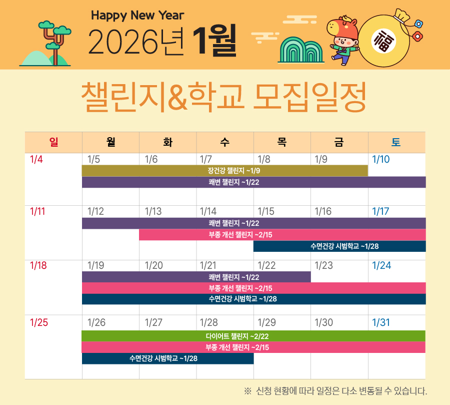 챌린지&학교 모집일정 - 2026년 1월