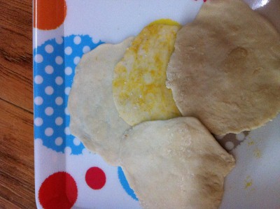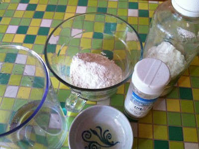 ๋ง๋ํผ:์ ๊ธฐํต๋ฐ๊ฐ๋ฃจ500g, ๋ฌผ 100ml, ์๊ธ ์กฐ๊ธ, ์ธ๊ธ๊ฐ๋ฃจ ์กฐ๊ธ