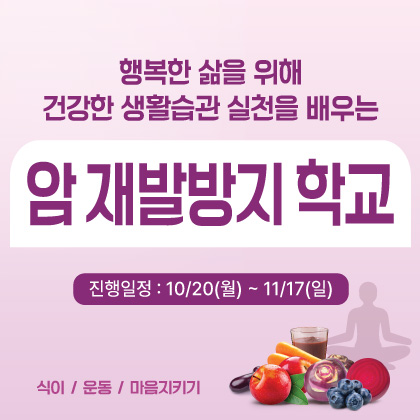 균형잡힌 식사와 규칙적인 운동을 통해 적극적인 암 예방 및 건강 관리하시기 바랍니다.