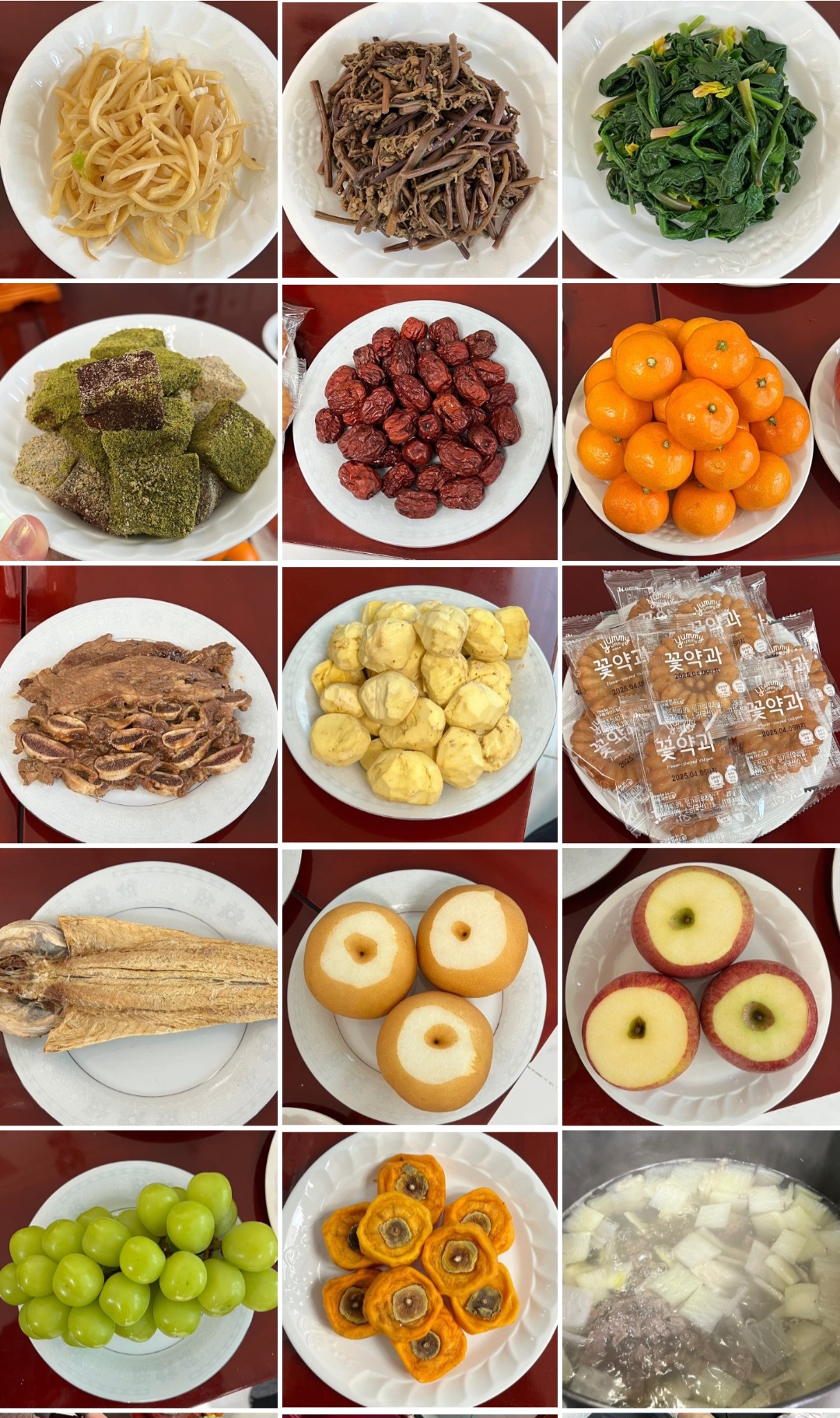 배3, 사과3, 대추, 밤, 황태포, 약과, 곶감은 차례후 가족끼리 차례주를 마시고 각자의 취향에 맞게 먹습니다. 특히나 약과와 반시곶감은 가족모두 너무 좋아하고 즐기는 아이템이랍니다.