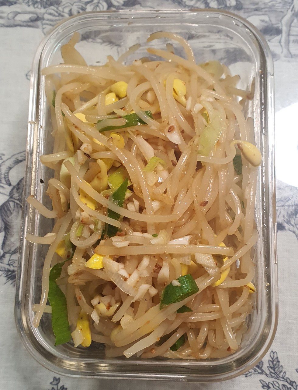 1.콩나물을 깨끗이 씻어서 냄비에 물을 넣고 소금 1t를 넣고 콩나물을 넣어 뚜껑을 닫고 삶는다