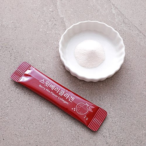 | | 물품특징 | | 1. 천연 베리믹스향으로 향긋합니다. 2. 1포(2g)당 피쉬콜라겐 1000mg, 비타민C 140mg 함유되어 있습니다. 3. 피쉬콜라겐의 경우 평균 2000Da(달톤)의 저분자 콜라겐으로, 틸라피아(역돔)라고 하는 생선의 껍질에서 추출된 원료를 사용하고 있습니다. | | | 이용방법 | | 충분한 물과 함께 섭취하시기 바랍니다. | | | 생산과정 | | 원료입고 → 계량 → 혼합 → 충진 → 스틱포장 → 박스포장 | | | 기타사항 | | 1. 특정질환·특이체질·알레르기체질인 경우, 간혹 개인에 따라 과민반응을 나타낼 수 있으므로 확인 후 섭취하십시오. 2. 임신, 수유부나 의약품은 섭취하는 분은 섭취 전 전문가와 상담하여 주시기 바랍니다. 3. 섭취 전 소비기한을 확인하시기 바랍니다. 4. 포장재에 의해 상처를 입지 않도록 주의하십시오. 5. 원재료 중 석류착즙분말에 의해 뭉침현상이 있을 수 있으나, 이는 안심하고 드셔도 좋습니다. 6. 이 제품은 알류, 우유, 메밀, 땅콩, 대두, 밀, 새우, 돼지고기, 복숭아, 토마토, 호두, 쇠고기, 조개류를 사용한 제품과 같은 제조 시설에서 제조하고 있습니다. | |