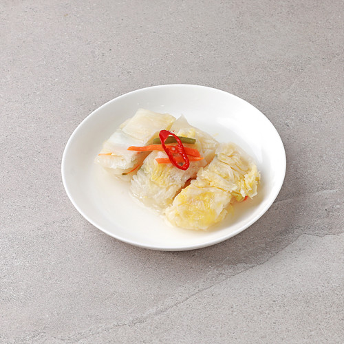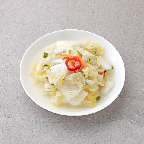 발효절임배추[배추(국산), 소금(국산), 찹쌀풀{정제수, 찹쌀가루(찹쌀:국산)}, 유산균], 정제수, 무(국산), 마늘(국산), 쪽파(국산), 대파(국산), 미나리(국산), 소금(국산), 양파(국산), 홍고추(국산), 당근(국산), 다시마육수(다시마:국산), 배(국산), 사과(국산), 생강(국산), 밤(국산)
