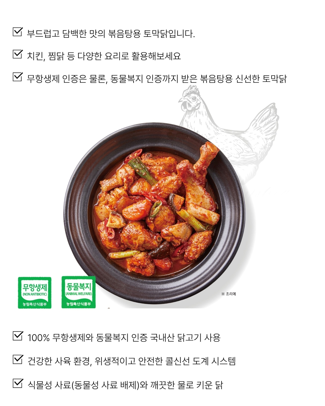 | 항생제 없이 식물성 사료만으로 키운 건강한 닭 담백하고 부드러운 식감의 볶음탕용 토막닭 ! | ||