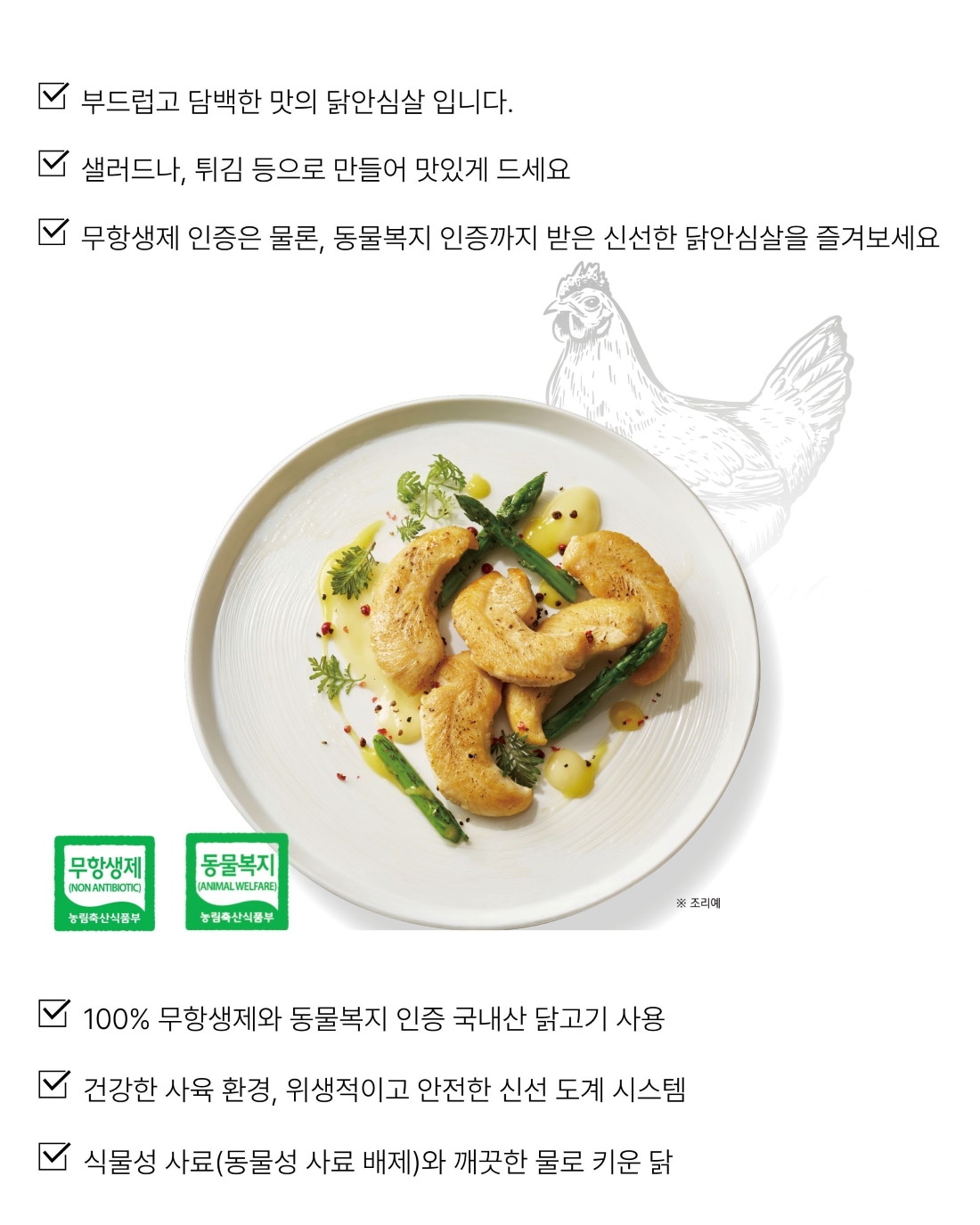 | 부드러운 식감과 고소한 맛의 닭안심살 샐러드 등 맛있게 조리하여 드세요 | ||
