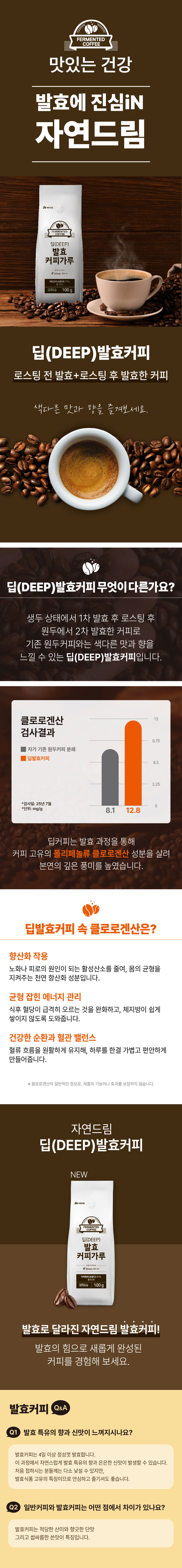 | 생두에서 원두까지 4일의 발효를 거친 딥(DEEP)발효커피 색다른 맛과 향을 경험해보세요. | ||