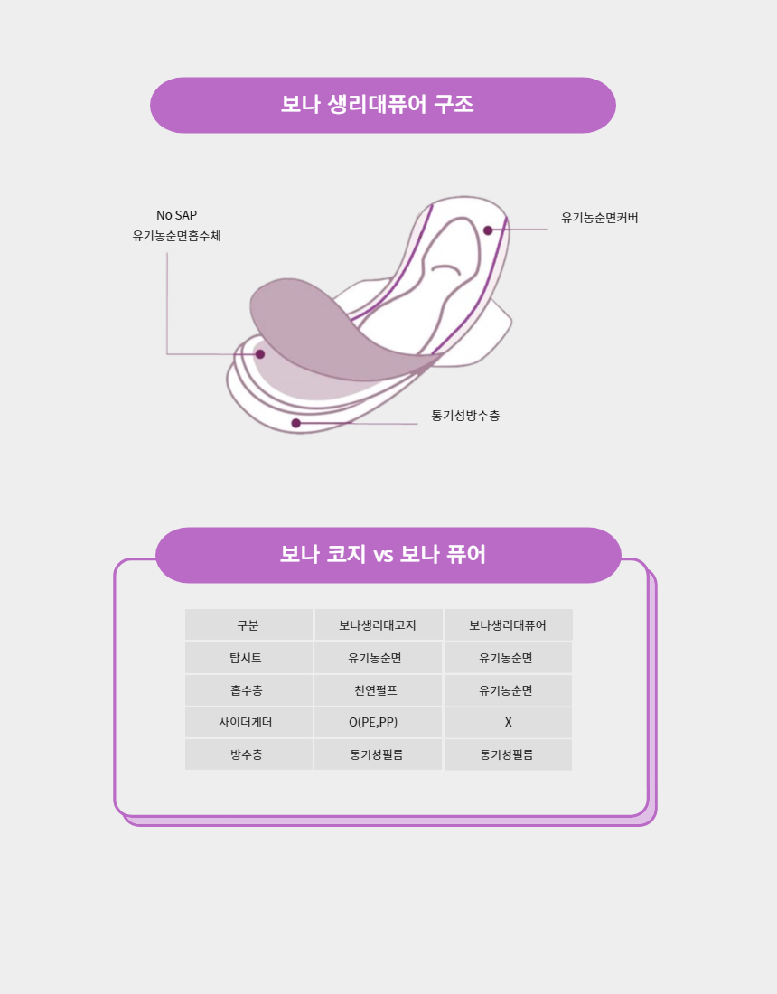 | 유기농순면커버, 유기농순면흡수체로 만들어진 1회용 생리대 고분자흡수체를 사용하지 않은 편안함을 선사해드립니다. | ||