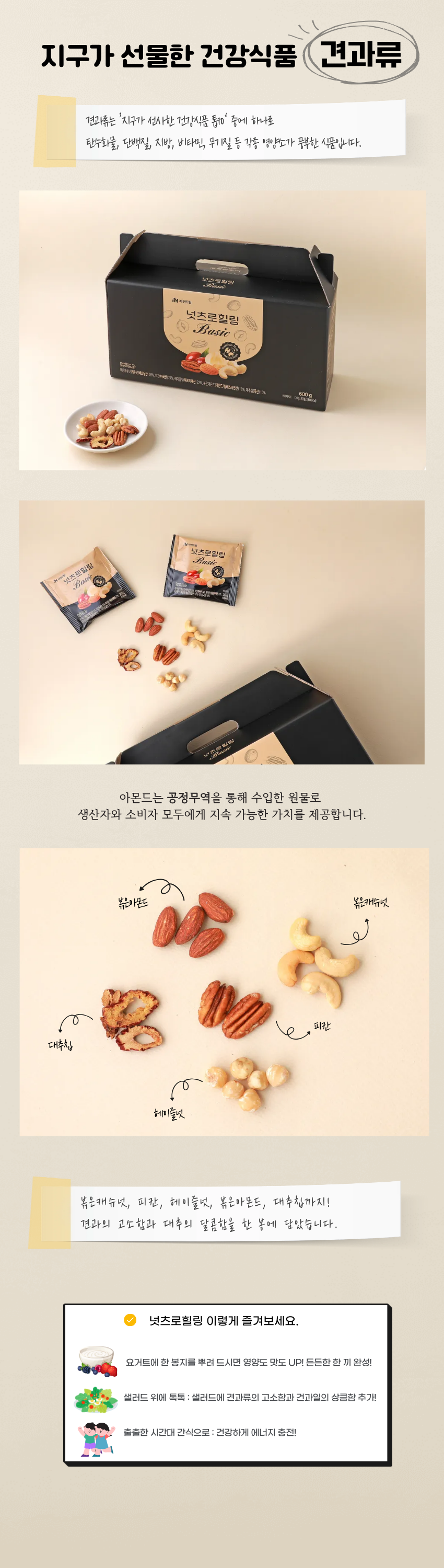 | 견과의 고소함 + 국산 대추칩의 달콤함, 한 봉으로 즐기는 건강 간식! | ||||