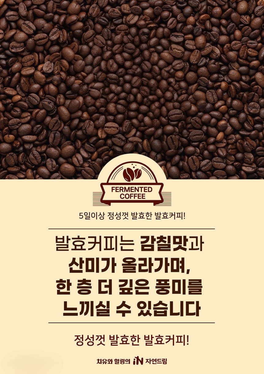 | 5일간의 발효로 달라진 자연드림 발효커피 발효원두커피(홀빈)로 편안하게 즐기세요! | ||