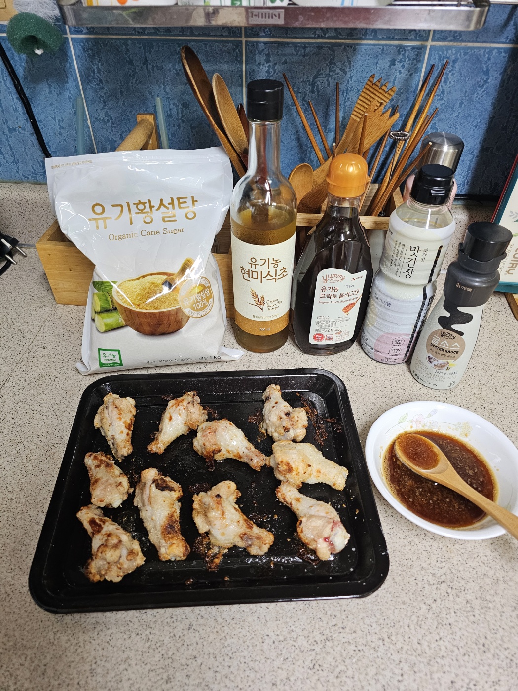 너무나 맛난 닭날개봉이 완성되었어요.